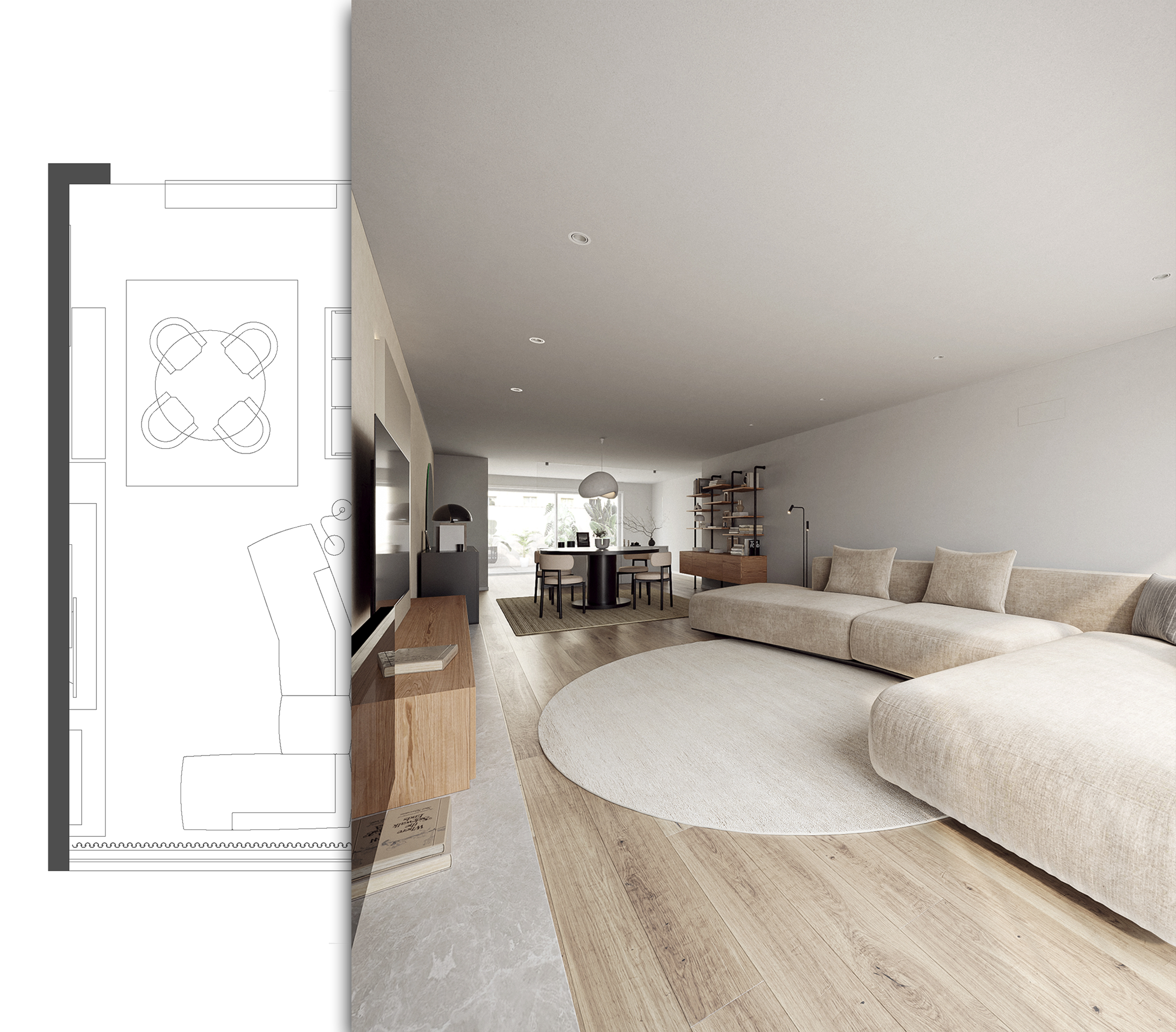 After receiving your first images and before requesting your review, you can book a videocall where we show your project rendered in real-time. This tool is great to explore your project, sugest new perspectives, try different materials, and more.